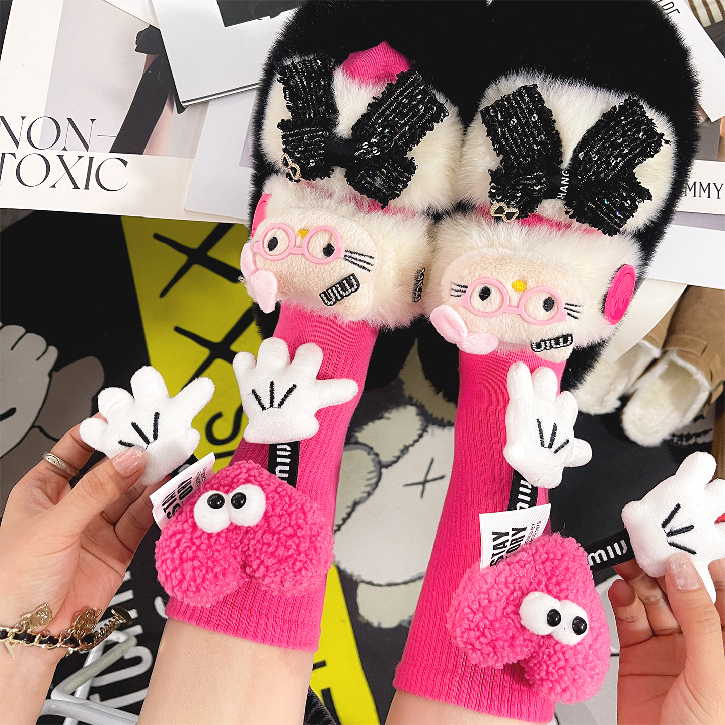 火龙果色可爱袜子女中筒袜ins潮外穿拍拍手爱心大眼睛饰品长筒袜
