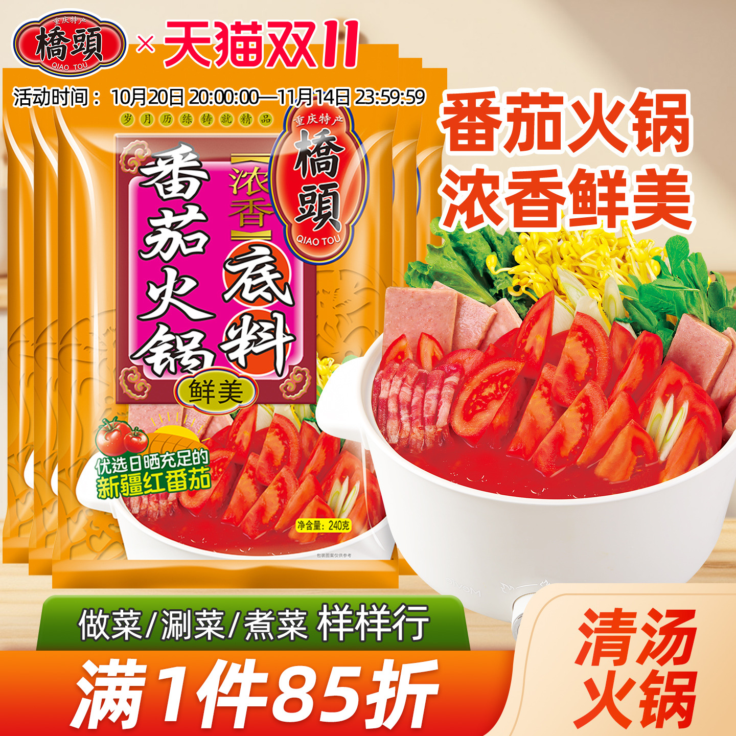 桥头火番茄酱火锅底料浓香清汤三鲜240g*5浓香家用四川火锅料调料