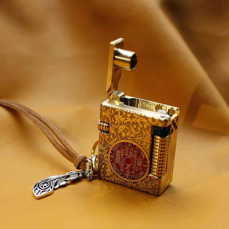 原创手作新款煤油打火机时尚雕刻工艺铜砂轮明火打火机加油送挂件