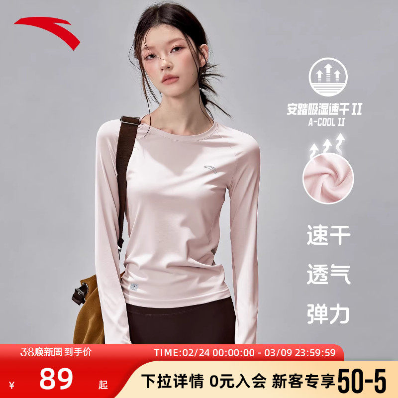 安踏运动t恤长袖女款新款速干羽毛球透气跑步训练瑜伽健身上衣女