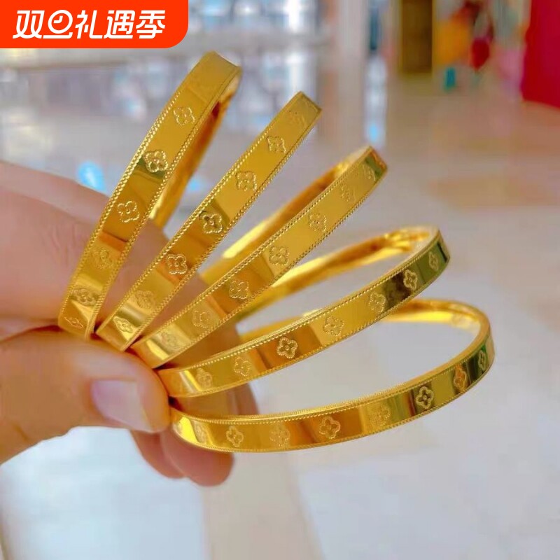 越南沙金四叶草手镯女士久不掉色镀金饰品手环简约正品黄色仿真镯