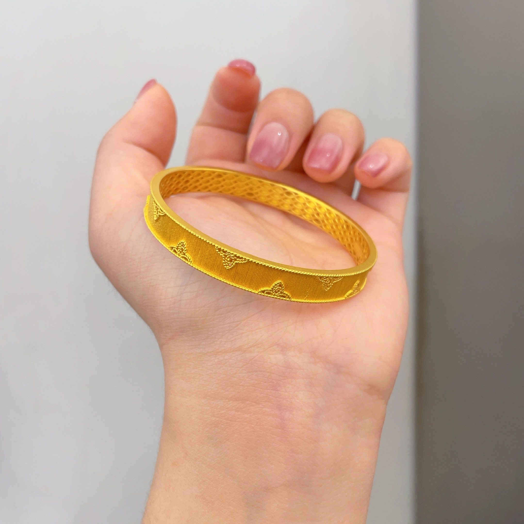 金店同款沙金织锦绸缎四叶草手镯拉丝窗花气质镯子轻奢送女友礼物