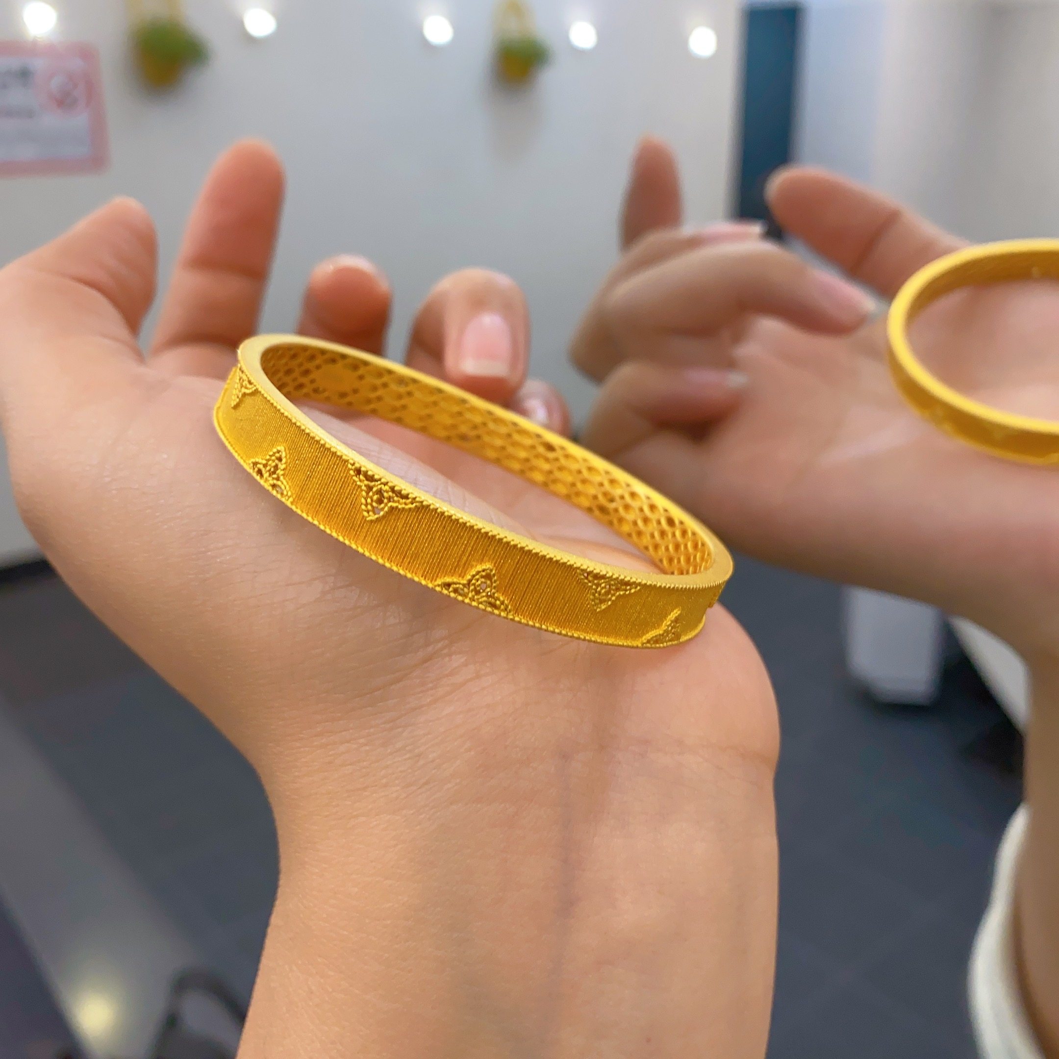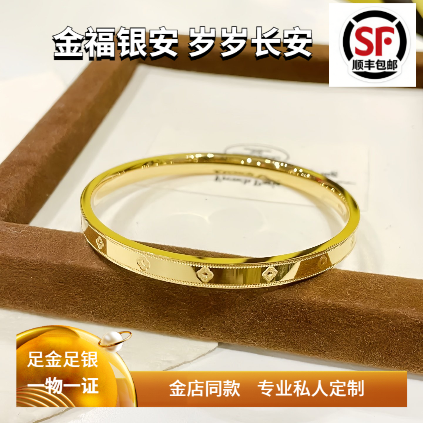 水贝黄金金店同款金包银卡家四叶草手镯古法传承实心素圈万花筒女