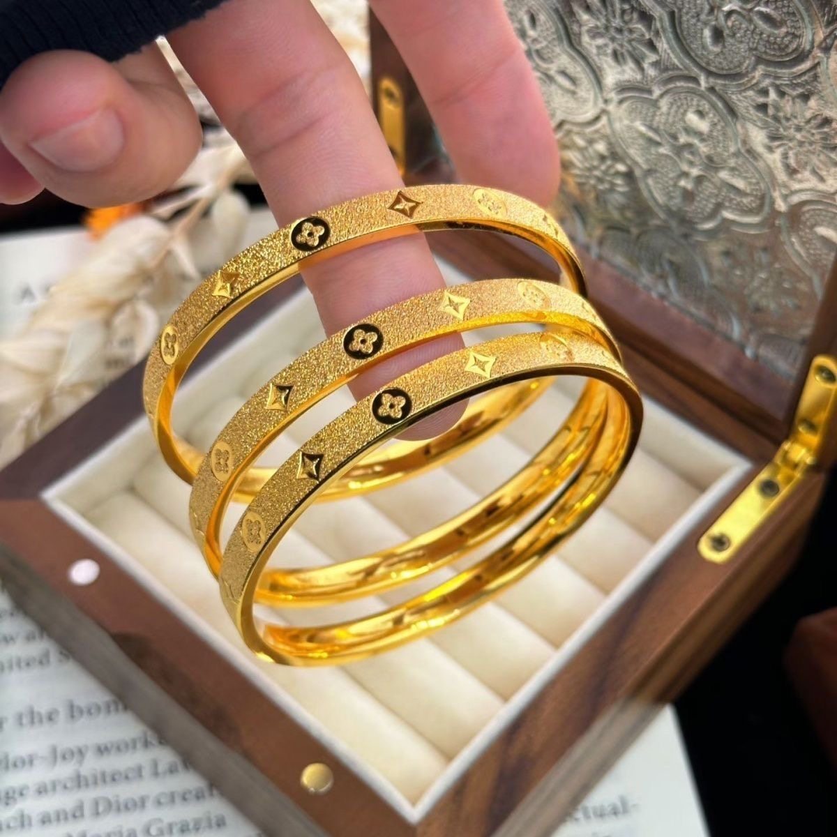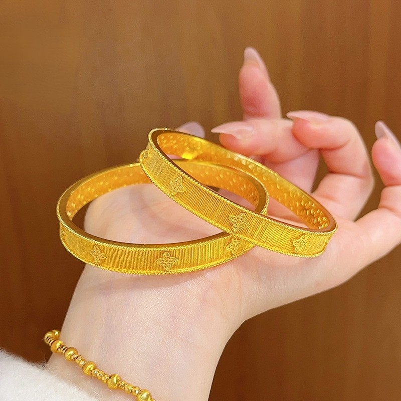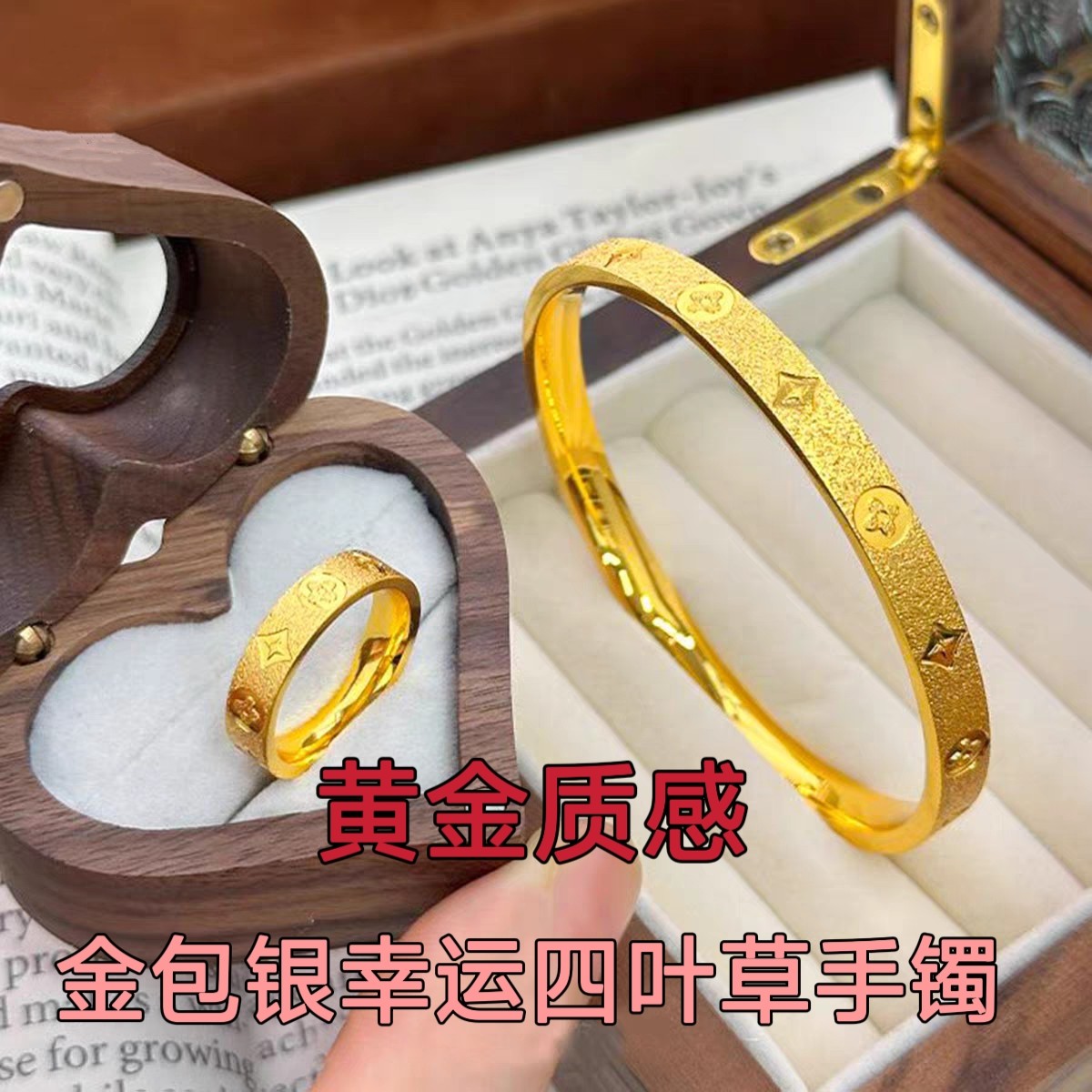 古法黄金包银手镯女款拉丝四叶草手镯时尚黄金同款送老婆生日礼物