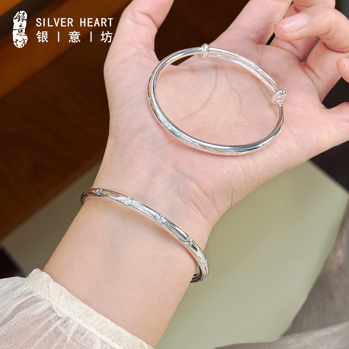 金包银四叶草手镯实心足金包银镯子送女友幸运草手环简约风大方款