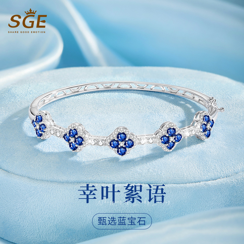 天然蓝宝石四叶草手镯女生款2026年新款纯银镯子年轻款送女友礼物