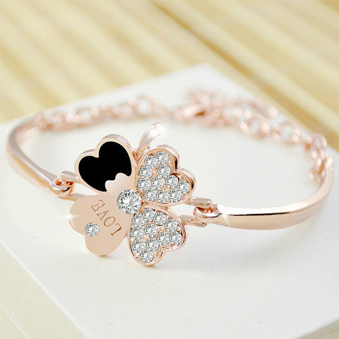 幸运四叶草手镯女钛钢玫瑰金手环镶钻手链饰品送闺蜜女友生日礼物