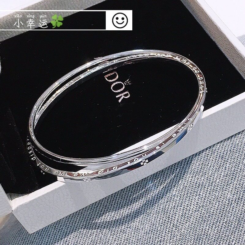 双环四叶草手镯女英文镯子白铜镀银三生三世闭口手环镀银手环新款