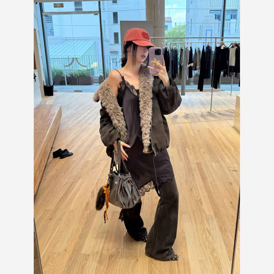 GRAFFETTA原创设计25春新款蕾丝可脱卸连衣裙 慵懒黑色白色长裙