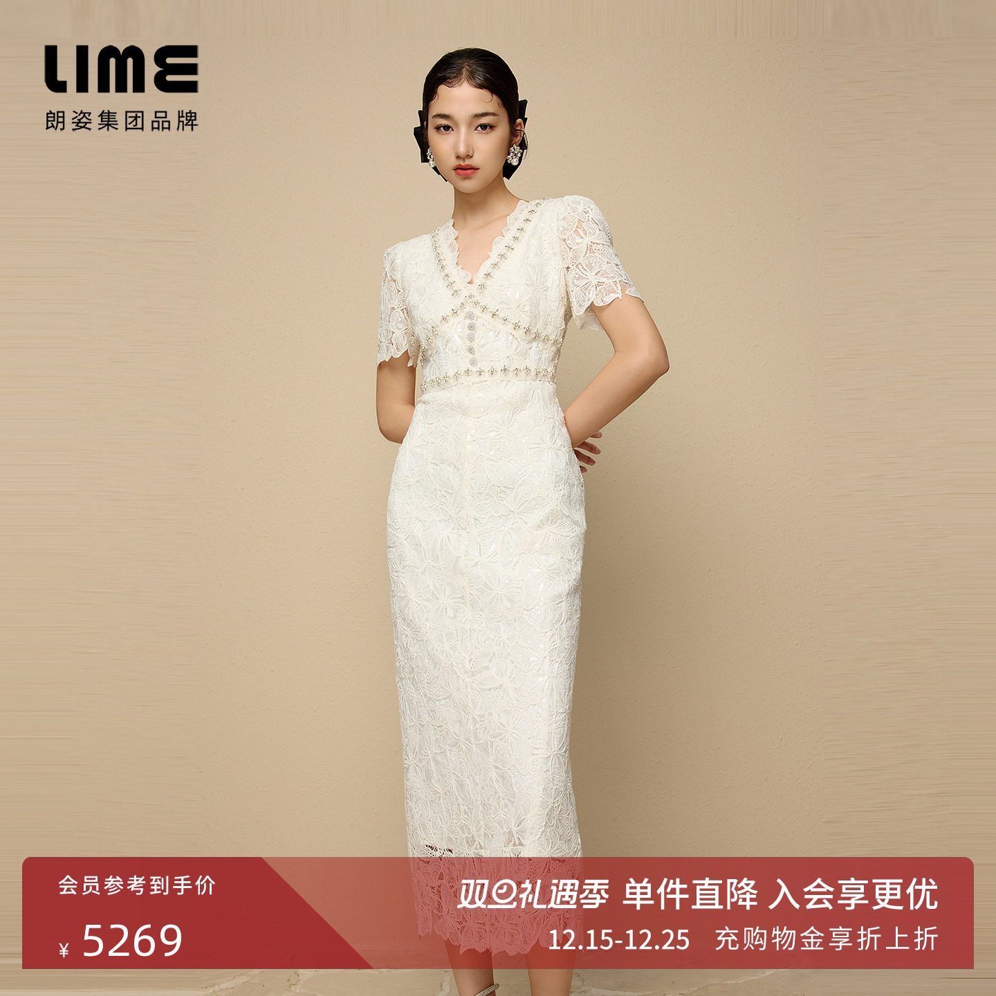 朗姿集团LIME莱茵优雅蕾丝连衣裙白色25夏花卉刺绣设计感礼服裙
