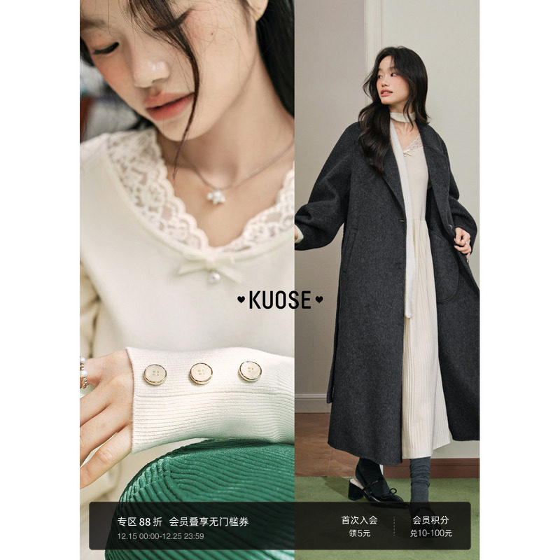 yjy*华籍美女*山羊绒镂空针织开衫+蕾丝v领内搭连衣裙咖色白色