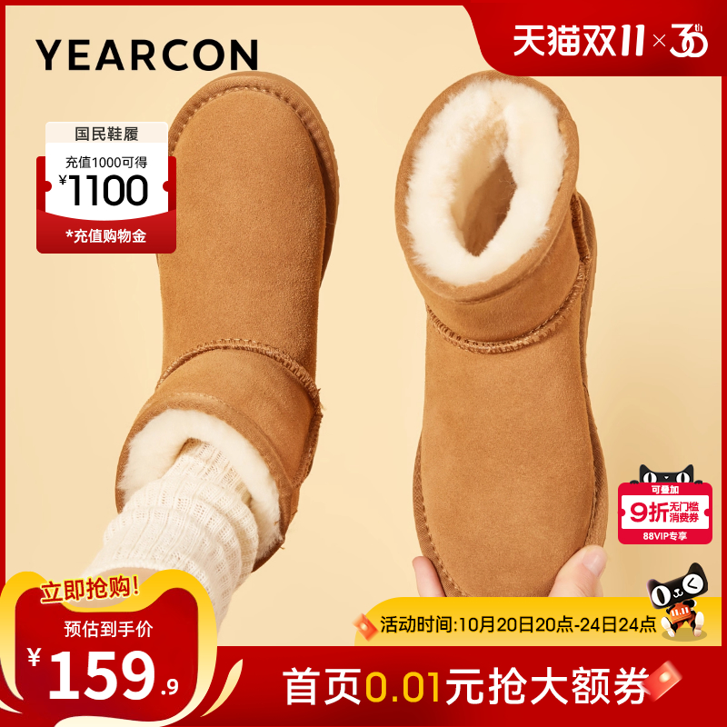 断码薏尔康真皮厚底雪地靴女款冬季平底防滑短靴加绒加厚保暖棉靴