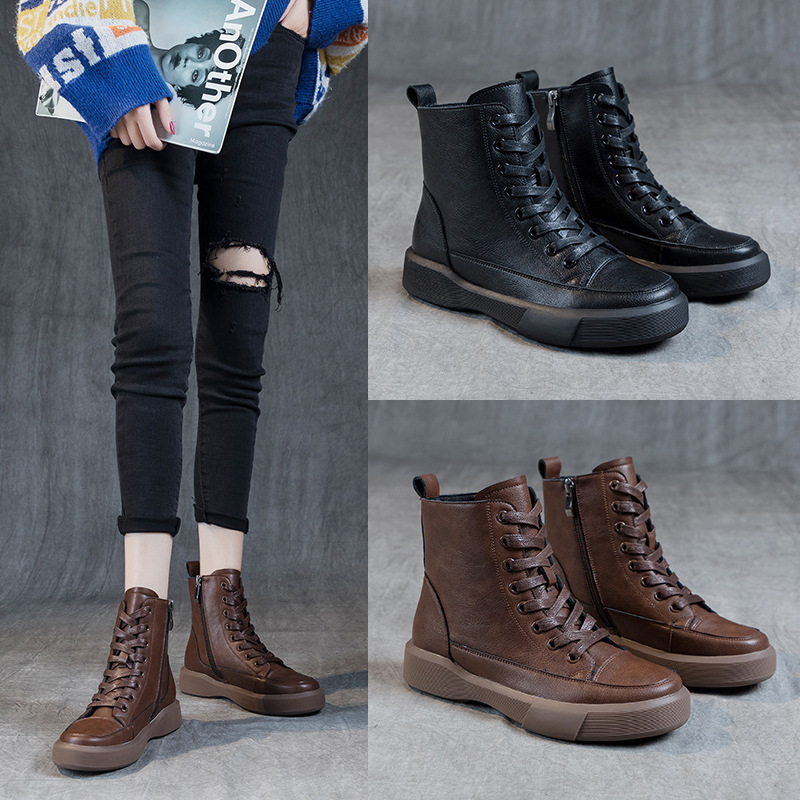 日本品质马丁靴女春秋单靴2025秋冬季新款女靴加绒平底靴子大码软