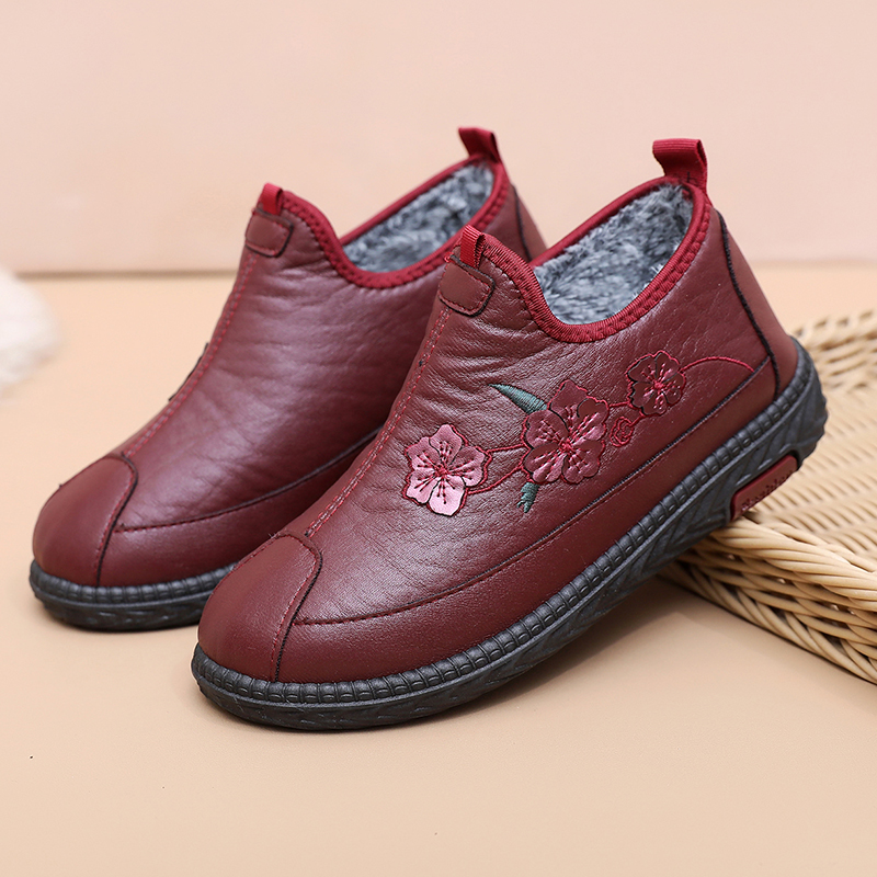 妈妈鞋冬季棉鞋加绒秋冬防滑中年短靴保暖老人中老年女鞋皮鞋平底