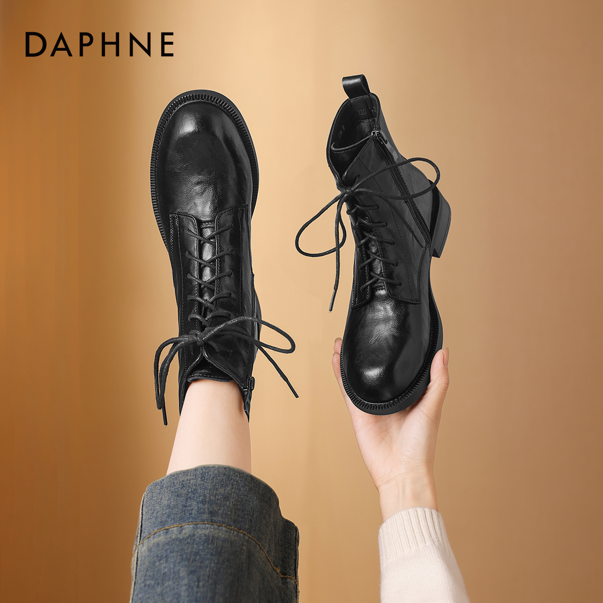 达芙妮真皮马丁靴女款2025新款秋冬英伦风低跟短靴女加绒平底靴子