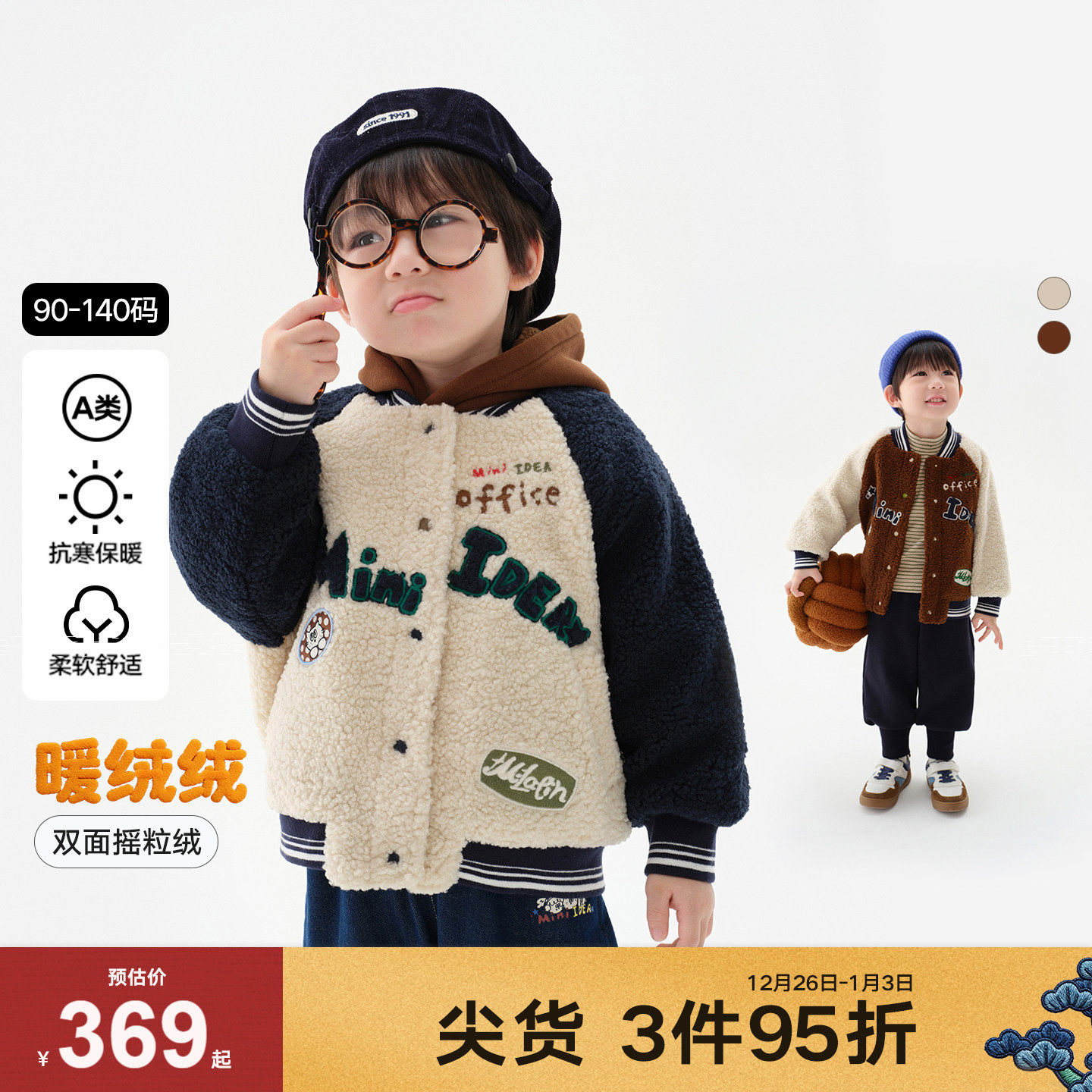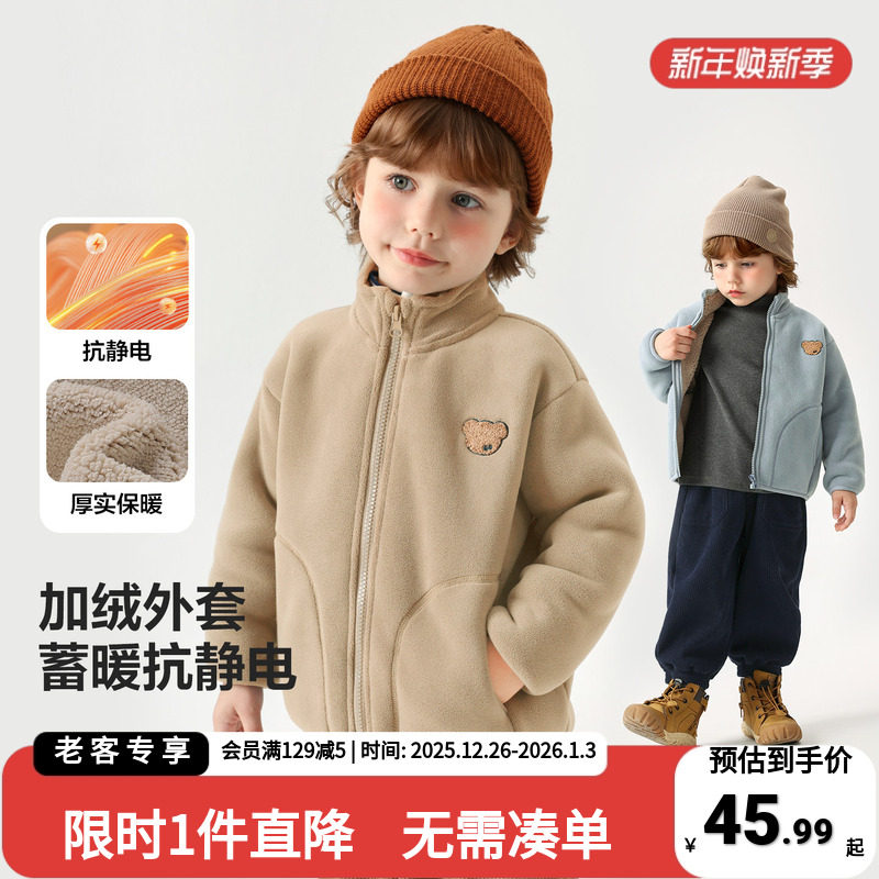 巴拉巴拉童装儿童外套宝宝女童男童新款加绒上衣2025秋冬摇粒绒潮