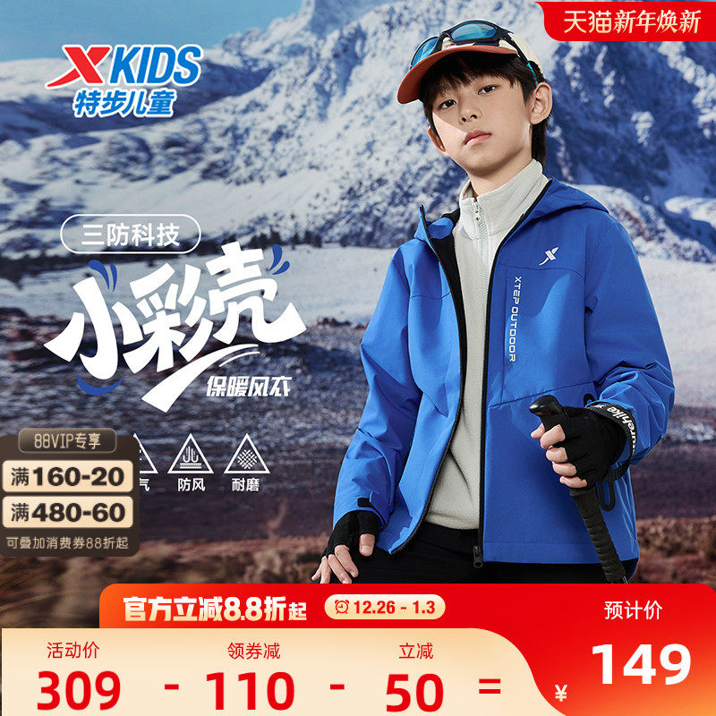 小彩壳|特步童装儿童外套男童冬季户外防风加厚款摇粒绒加绒上衣