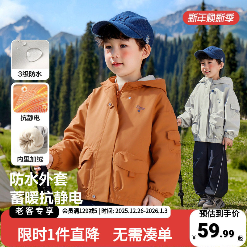 巴布豆童装男外套三合一儿童外套秋冬装2025新款防风防水软壳上衣