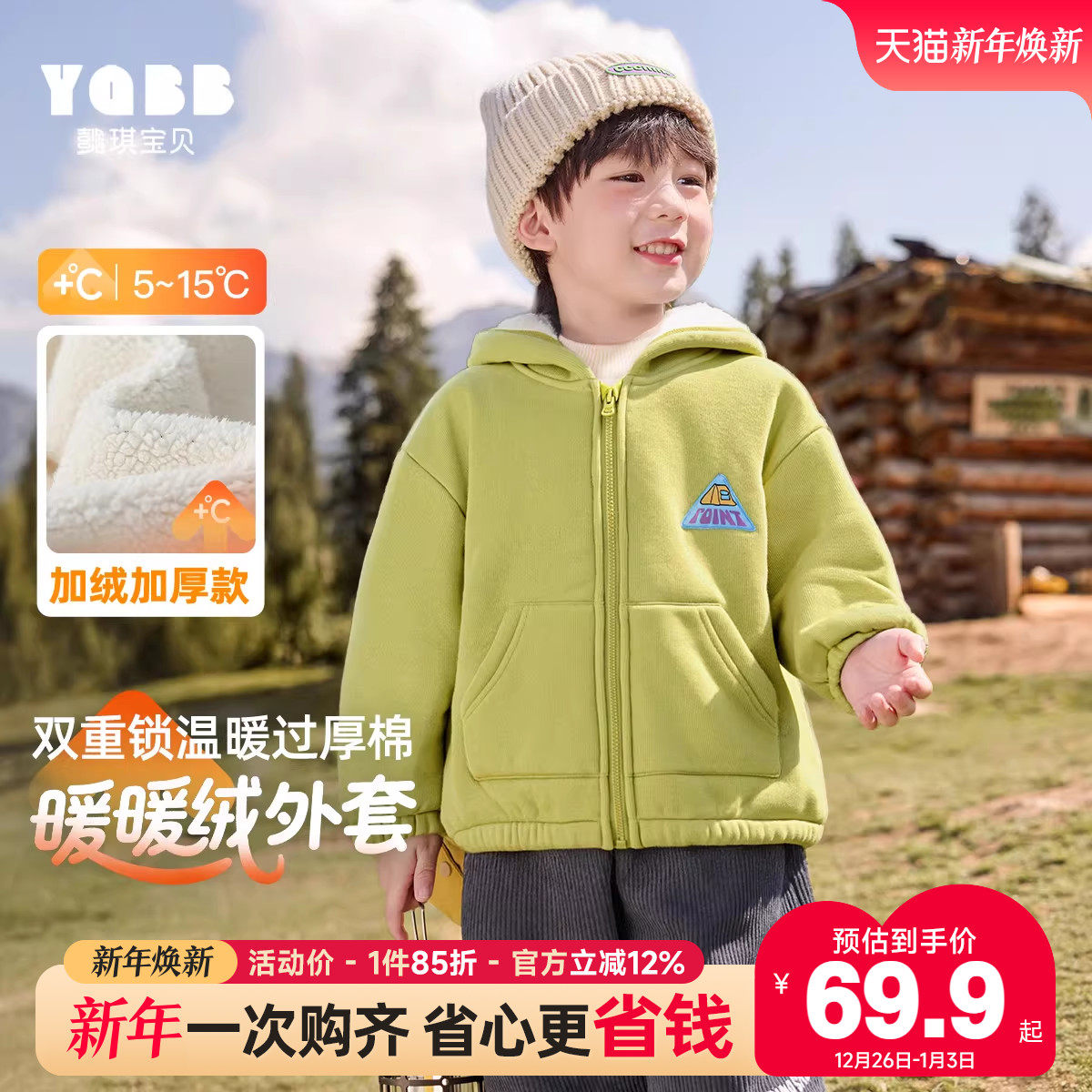 巴拉巴拉男童外套宝宝加厚摇粒绒上衣儿童休闲卫衣冬装新款童装小