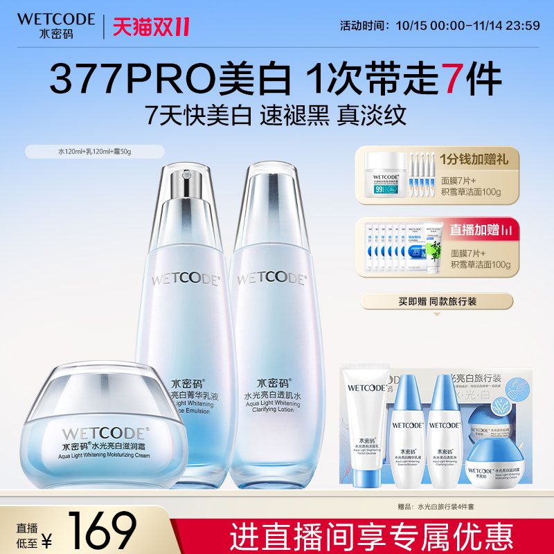 水密码377美白淡斑水乳套装精华修护亮白补水保湿护肤品女官方