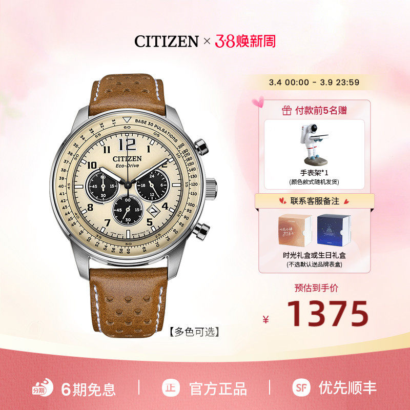 【热销爆款】西铁城FF飞行户外运动休闲腕表光动能皮带男表CA4500
