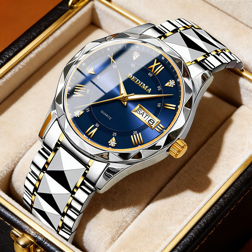 瑞士品牌防水夜光新款男士手表皮带款石英表直播外贸爆款一件代发