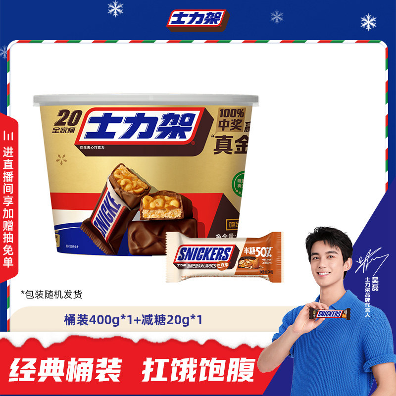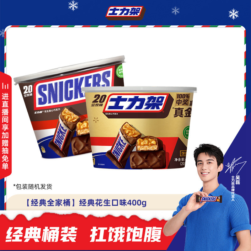 德芙士力架花生夹心巧克力400g桶装全家桶休闲零食能量棒糖果喜糖