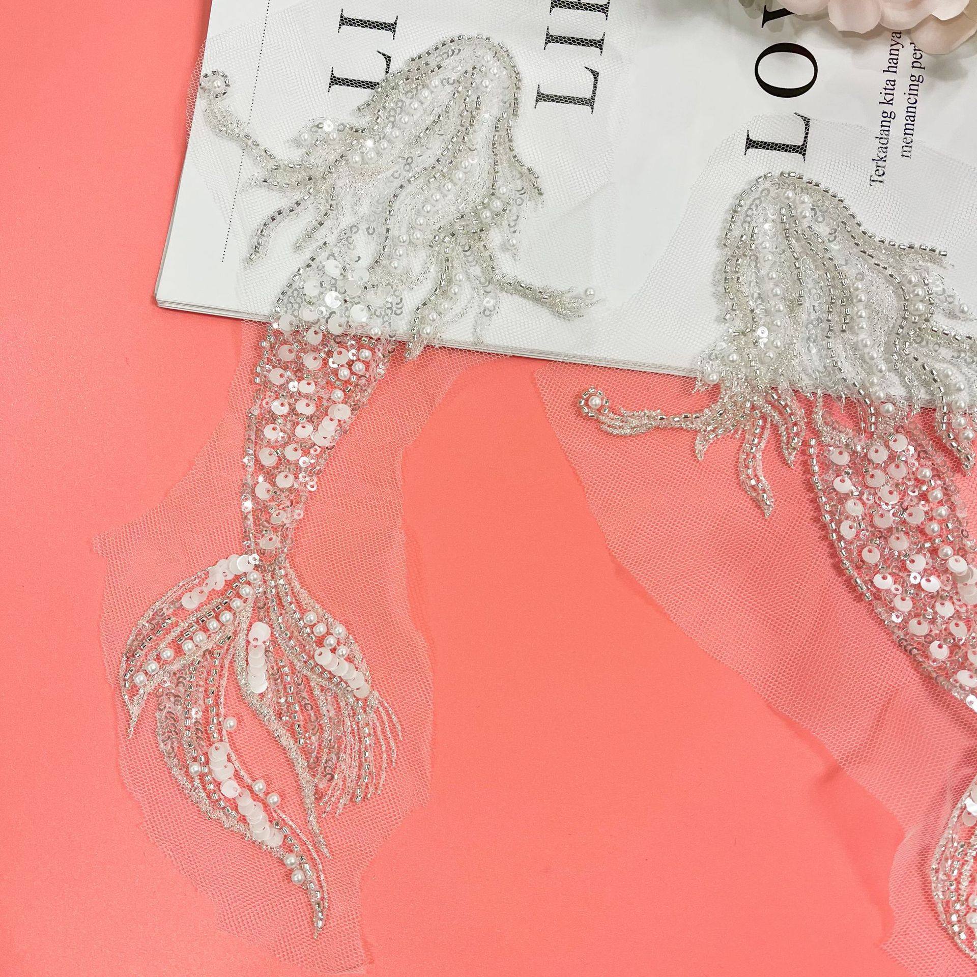 新款美人鱼服装花边钉珠立体补丁金鱼婚纱礼服头纱童装diy辅料