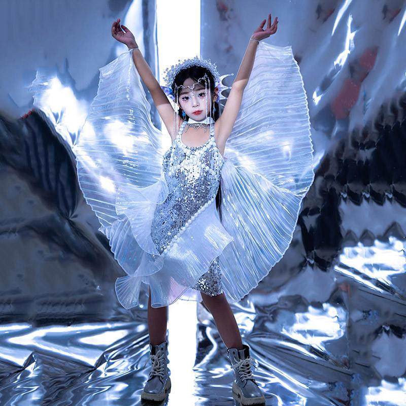 影楼儿童美人鱼服装梦幻科技感机车潮服亮片鱼尾裙精灵海洋主题服