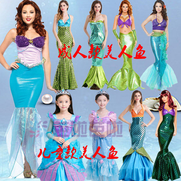 新款秒杀 成人儿童 美人鱼服装女童公主裙 幼儿园亲子走秀表演服