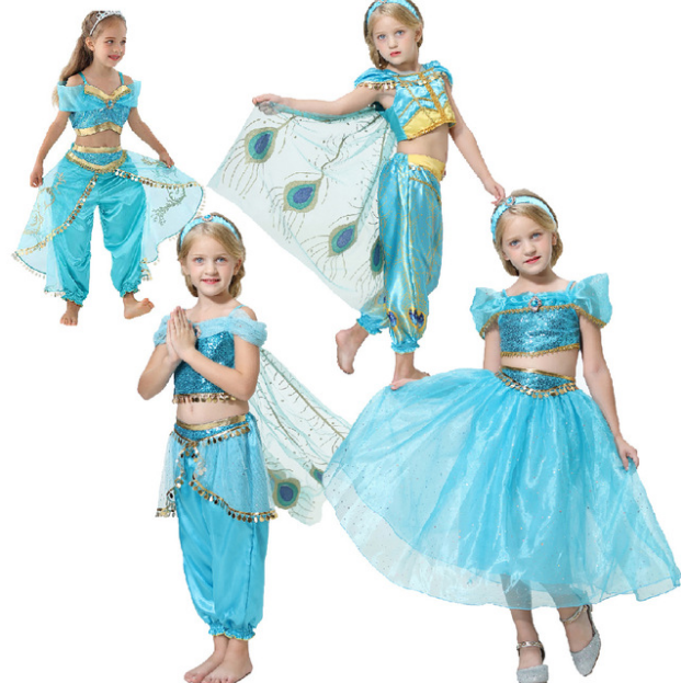 欧美儿童圣诞节两件套阿拉丁舞蹈服茉莉公主裙美人鱼服装COS服装
