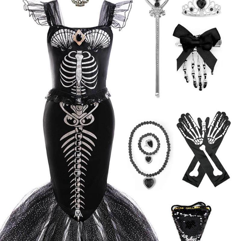 女孩黑色哥特式服装Cos万圣节骷髅黑色美人鱼服装鱼尾表演服装