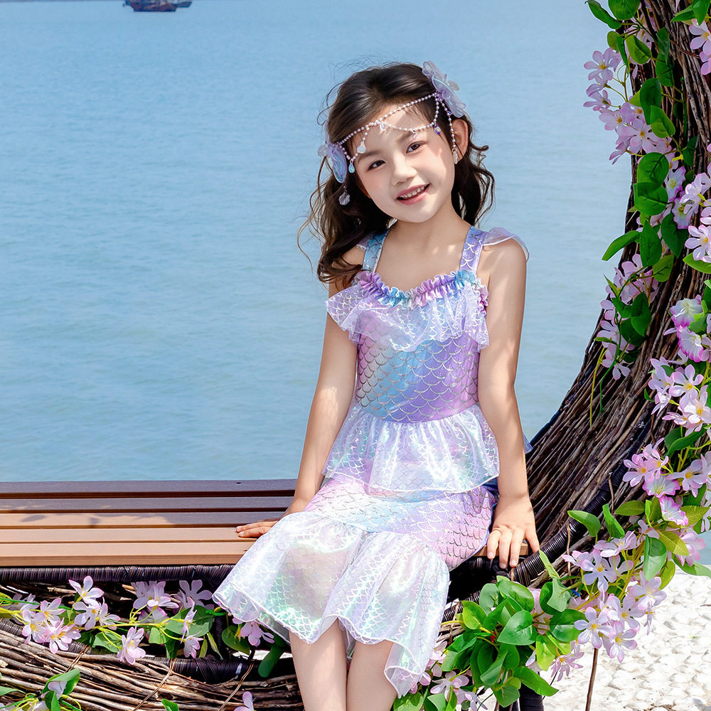 女童速干泳装美人鱼泳衣美人鱼尾巴女孩美人鱼服装儿童温泉游泳衣