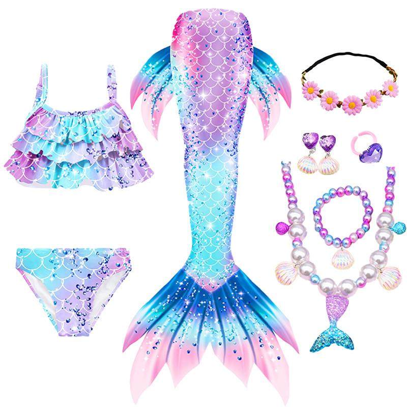 儿童美人鱼衣服尾巴公主裙女童美人鱼裙子服装游泳泳衣套装鱼尾裙