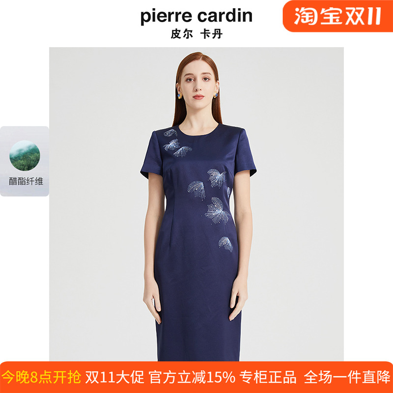 皮尔卡丹女装年春季新款端庄淑女刺绣修身连衣裙P2136E2074T0