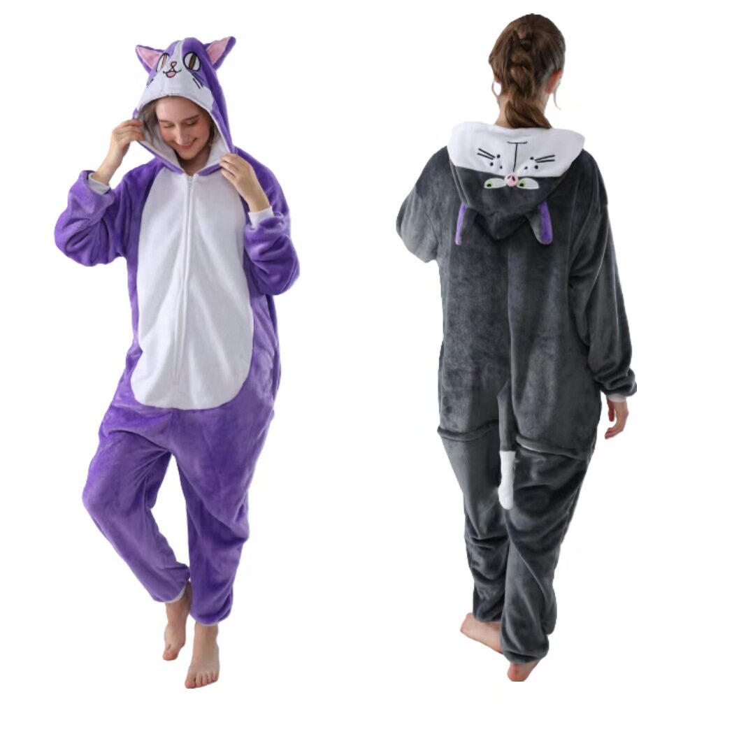 可爱成人搞怪动物漫卡通连体睡衣男女套装学生情侣款法兰绒春秋季