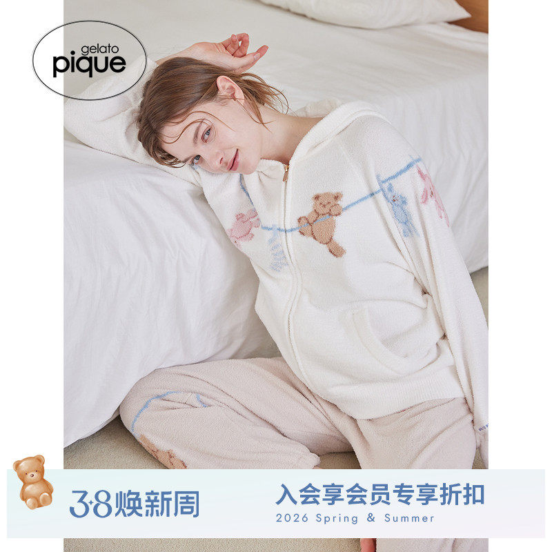 gelato pique26春夏新品女睡衣半边绒洗涤动物连帽开衫PWNT261118