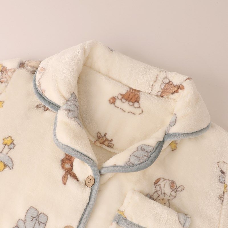 歌瑞家2025冬款男女童宝宝萌趣卡通动物睡衣居家长袖对襟上衣
