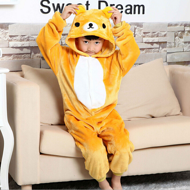 轻松熊动物睡衣连体卡通可爱宝宝超人法兰绒家居服男女派对演出服