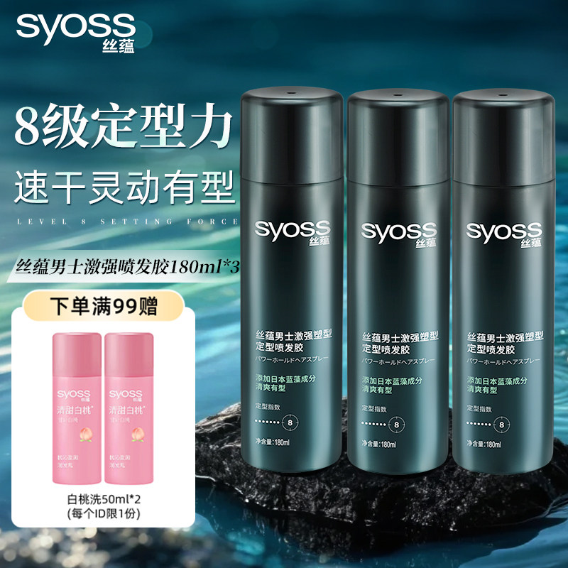 丝蕴syoss激强塑型男士造型8级强力定型不易粘腻清爽发胶喷雾套装