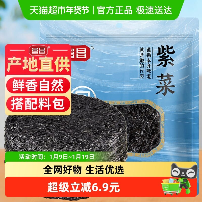 富昌头水紫菜干货40g含料包深海水产裙带菜无沙虾皮煲蛋花汤汤料