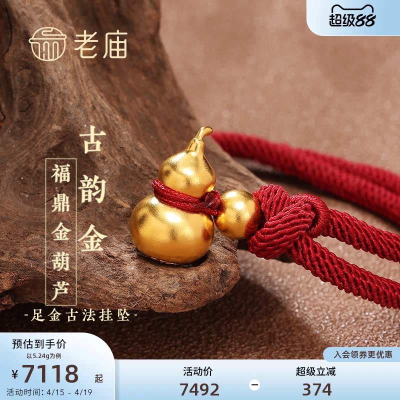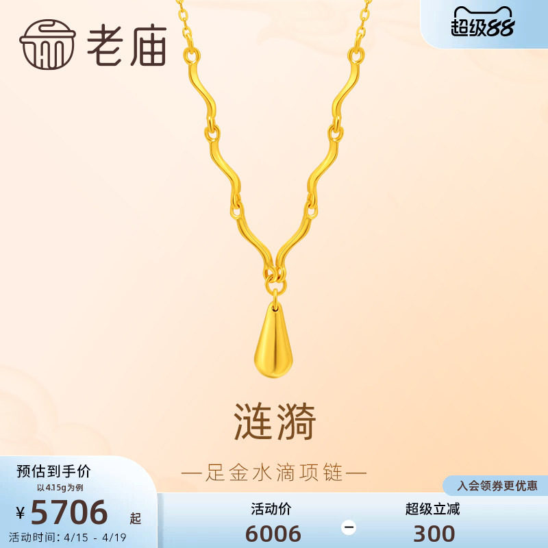 老庙黄金足金水滴项链5G精致时尚小众波浪气质送礼女生通勤官方