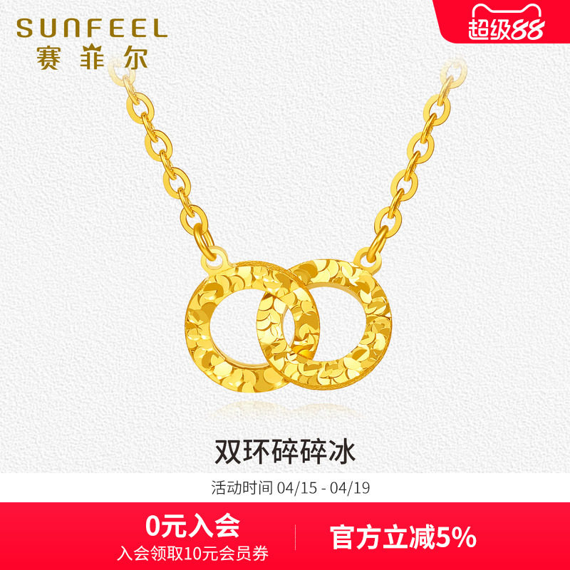 百泰金珠圆片黄金项链足金999套链圆形几何吊坠挂坠女锁骨链金链