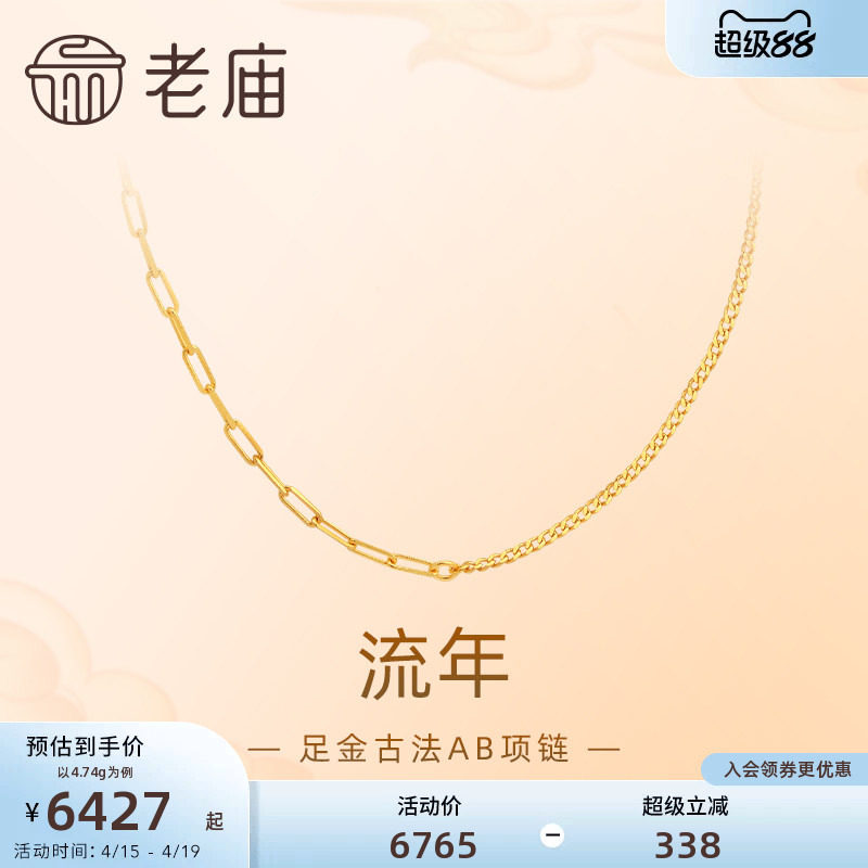 老庙黄金项链古法金长十字双链型AB足金项链女百搭送礼官方正品