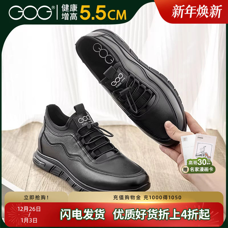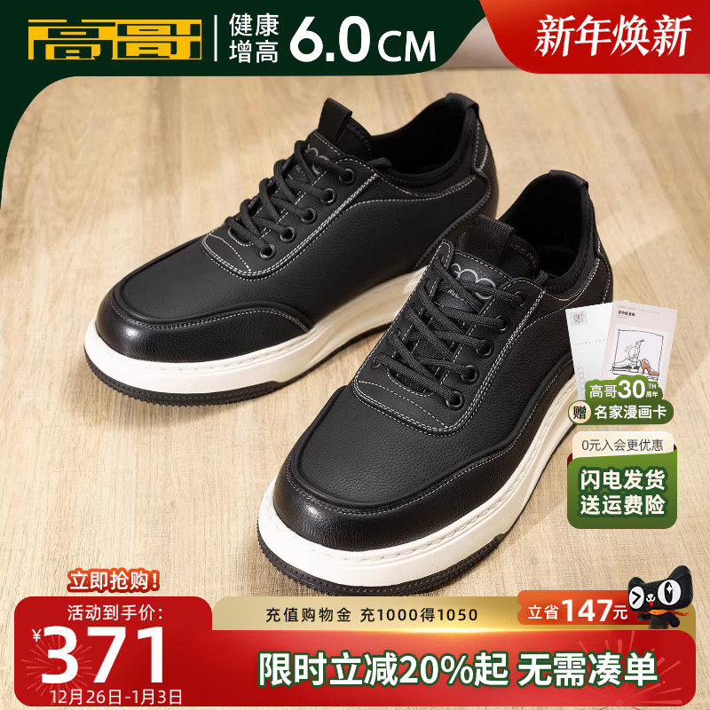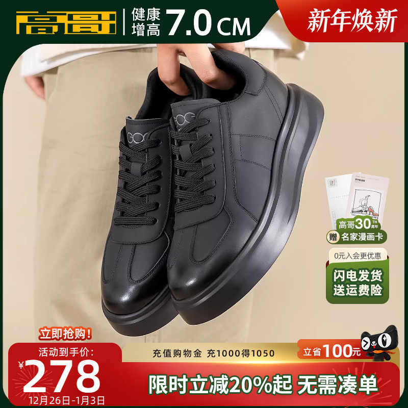 高哥增高板鞋厚底头层牛皮男鞋轻便2026春季新款鞋子内增高休闲鞋