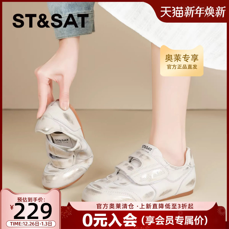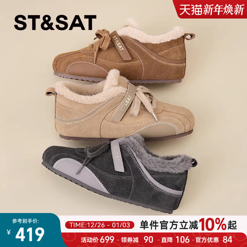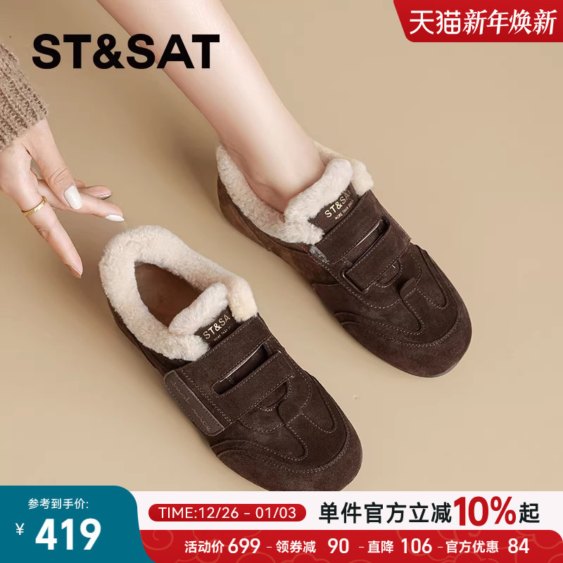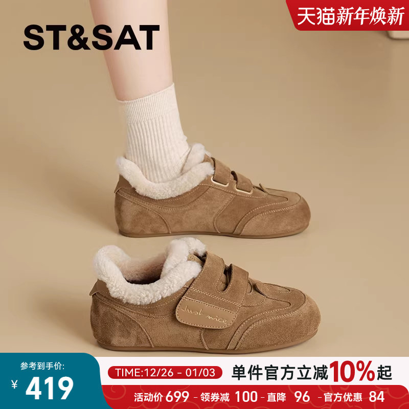 星期六软底内增高休闲鞋女款2025新款冬季加绒保暖棉鞋真皮德训鞋