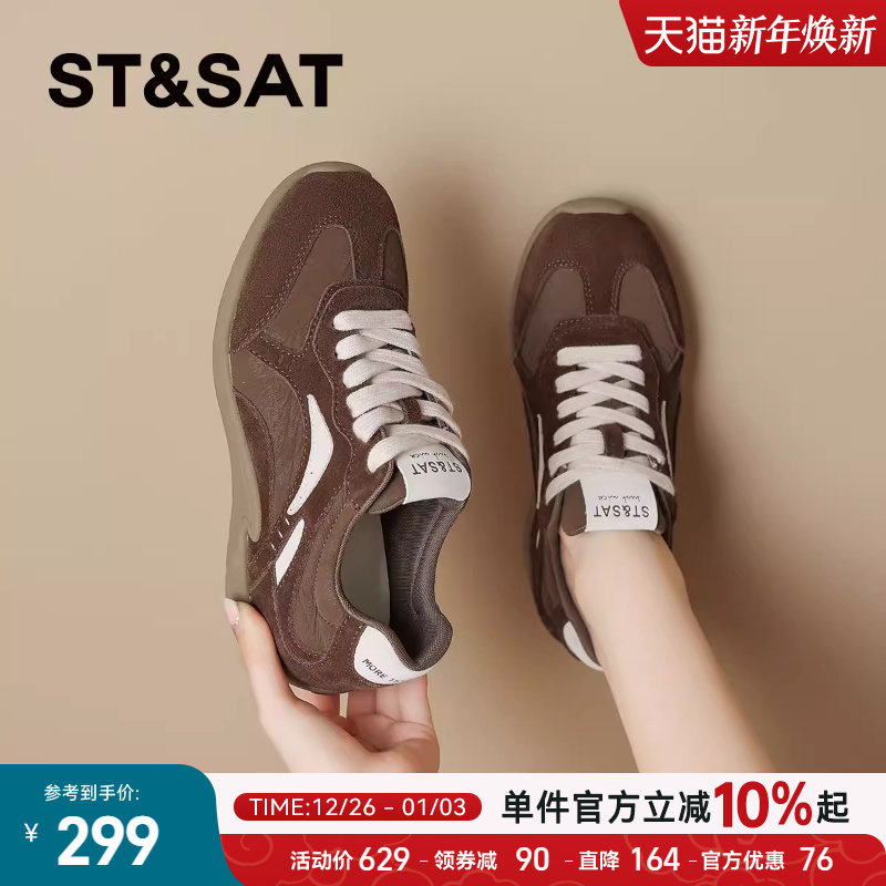 星期六双鞋带德训鞋女款2025新款秋冬厚底加绒运动鞋内增高休闲鞋