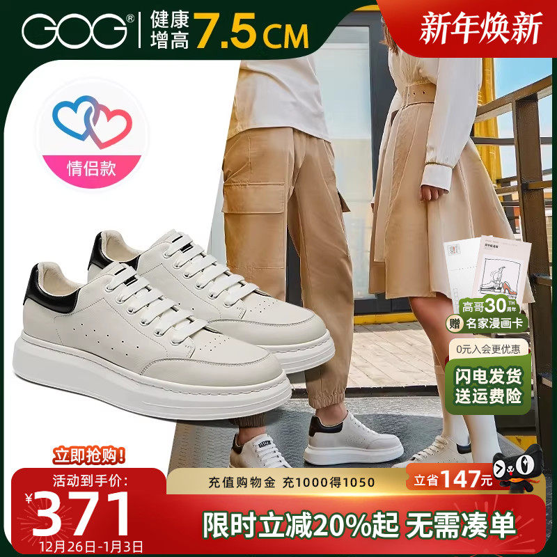 高哥增高鞋男款秋冬新款麦坤小白鞋情侣真皮板鞋内增高休闲鞋子男