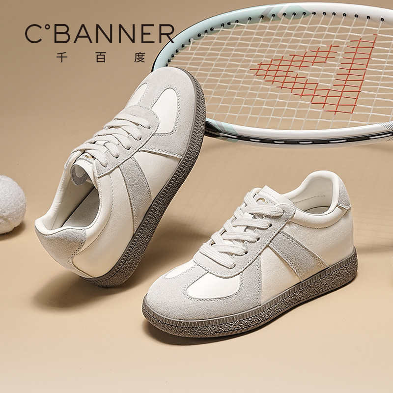 千百度板鞋女2025春秋新款复古拼色德训鞋时尚百搭内增高休闲鞋