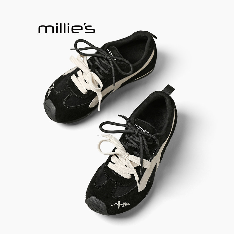 MILLIE'S/妙丽冬款加绒内增高休闲鞋女厚底复古双鞋德训鞋运动鞋Z